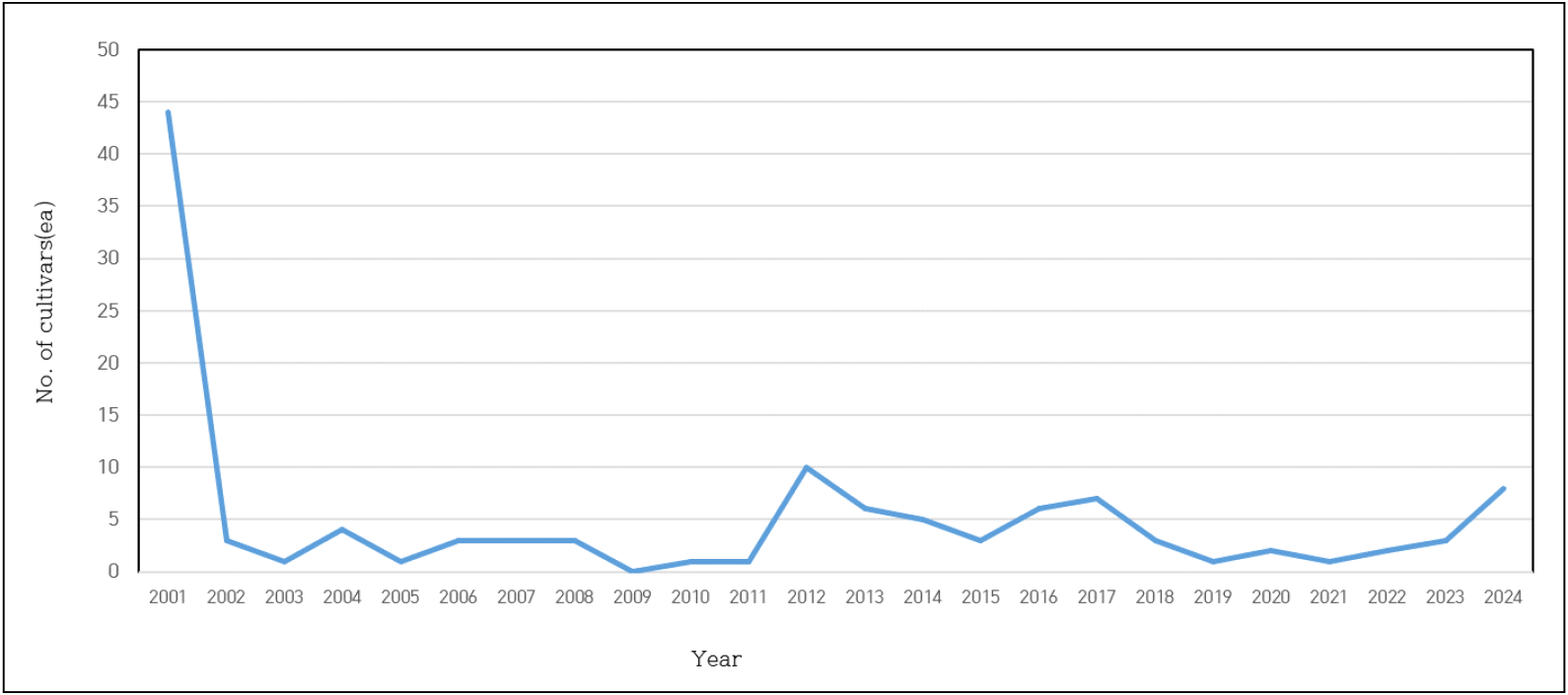 해외 신품종 보호 및 상업화 제도에 등록된 무궁화(